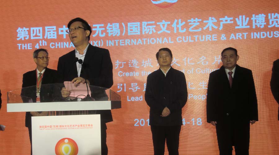11月14日,由江苏省文化厅,无锡市人民政府主办的,第四届中国(无锡)国际文化艺术产业博览交易会在太湖国际博览中心开幕,省文化厅厅长徐耀新; 原中央组织部领导、书画家宗德洛;原文化部文化产业司领导李小磊 ;市委常委、宣传部长王国中;中国会展研究会会长袁再青;江苏省工美协会理事长马达;副市长领导华博雅、市政协副主席孙志亮、市委副秘书长王安岭、市政府副秘书长吴建昌、市文广新局局长叶建兴等领导出席开幕式。北仓门生活艺术中心董事长、北仓门文化创意产业园运营管理中心总经理郑皓华应邀出席。