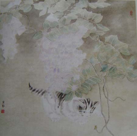 她学画的起点很高,儿时就师从著名画家张正吟,后又随陆越子教授习画,在他们引导下,坚持到大自然中去观察,研究花理、花性、花趣,她以女性特有的细腻感悟自然、感悟生命,与花鸟鱼虫对话、交流,从而真正溶入了花鸟鱼虫的世界,如同庒周梦蝶,不知道自己是蝶还是庒周。所以她的画不是老师作品的简单重复,而是倾注她感情、感悟的人生副本。白石老人说:“学我者生似我者死”,只有把前辈的技法灵活运用,才能形成自己的风貌,才能跟随时代步伐。