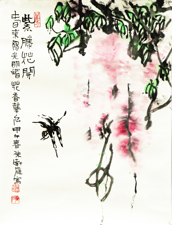 水墨作品《紫藤花间》