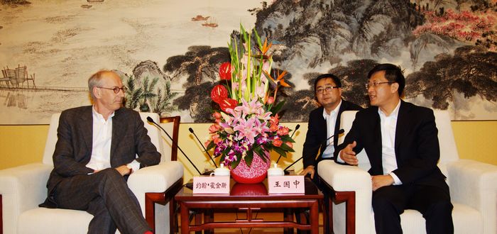 10月19日上午,市委常委、宣传部长王国中会见了来锡考察的“世界创意产业之父”约翰·霍金斯先生,双方进一步加强文化创意产业合作事宜进行了深入交流。市文广新局叶建兴等主要负责人一同参加了会见。