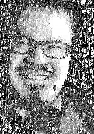 颜色或深或浅的椅子一张张堆放起来,看似凌乱,实则却组成一张面容可亲的刘小康人像。唇边的一张红色椅子不仅代表了他脸上的痦子,也增加了不少俏皮的意味。这是刘小康设计的海报,对刘小康而言,椅子不仅是用来坐的,也一直是他设计作品的一个主题。