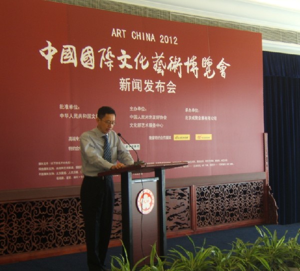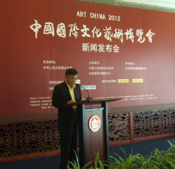 (26日)上午,由文化部批准,中国人民对外友好协会和文化部艺术服务中心共同主办,北京成聚会展有限公司承办的2012中国国际文化艺术博览会(以下简称“艺术博览会”)在京举行新闻发布会,宣布本届博览会将于2012年11月2日-4日在北京.全国农业展览馆新馆隆重举行。目前各项筹备工作进展顺利,已进入“收官”阶段。