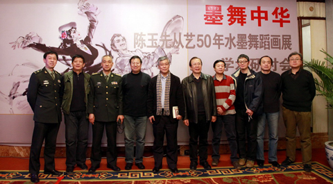 15日,《墨舞中华》陈玉先从艺50周年水墨舞蹈画展学术研讨会在京召开。中国文艺界、美术界的专家学者们聚集一堂。在观看了画展作品的幻灯放映后,林阳、陈履生、吴涛毅、李爱国、袁正阳、乔天富、王晋军、许向群、杨奕、仓小宝等文艺界、美术界专家陈玉先绘画成,以及他的水墨舞蹈画上对中国画的突出贡献进行了深入研讨,展开了热烈的讨论。专家们一致认为,陈玉先从艺50年来,勤奋耕耘,作品迭出,其成果之丰硕,当今中国美术界难以有人与之比肩。展览将要展出的陈玉先近年来创作的水墨舞蹈画,是中国水墨舞蹈画的一座高峰。