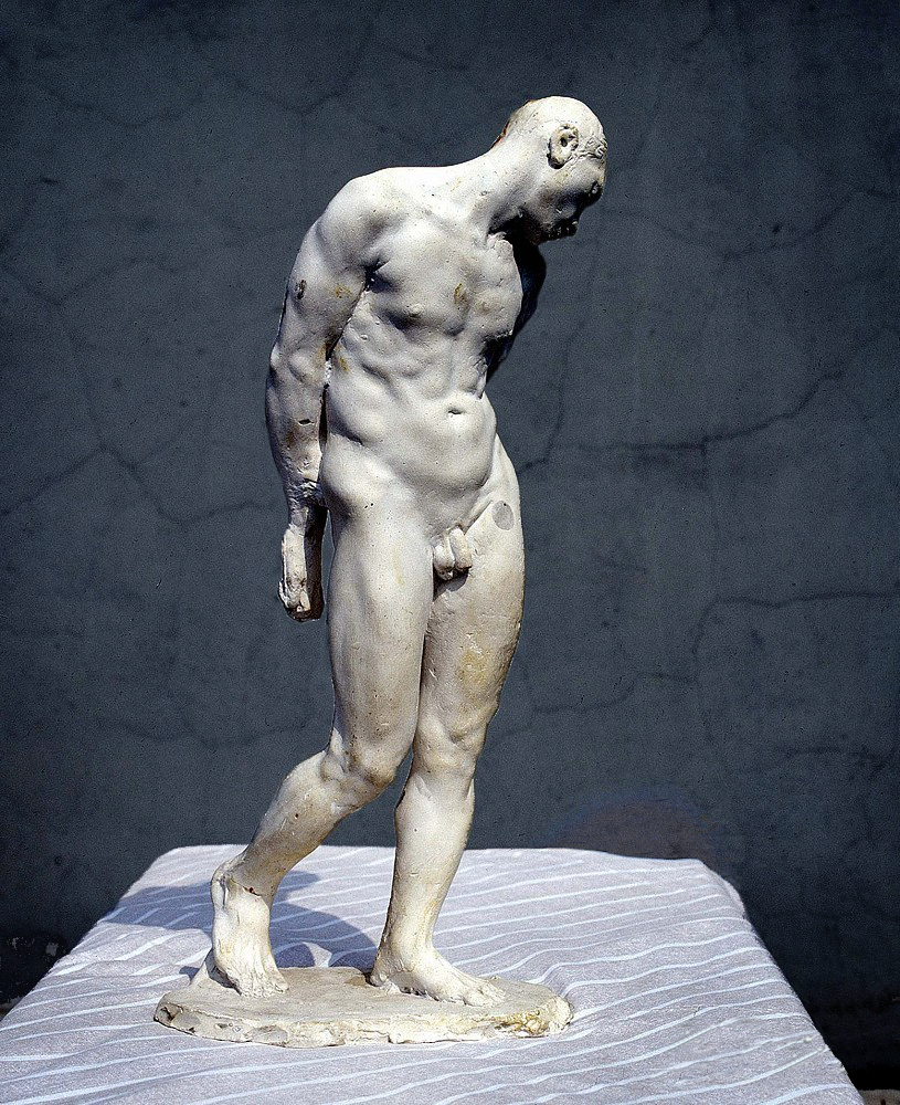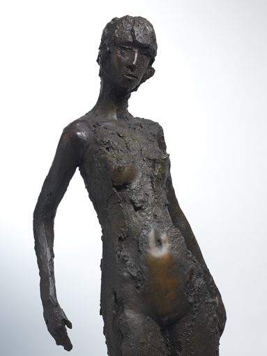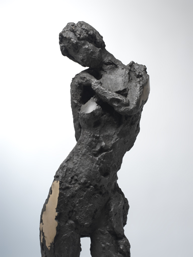 张峰的作品具有强烈的现代感,力图充分表达感受而不在意形的完整与准确,这种观念直击艺术宗旨。一些人将表达形体当成目的,其实形体只是作者表达感觉的媒介,借此将自己的情感传达给观众。看他的作品初会关注缺损的局部,它们只是驱壳,空心又斑驳不全,而整体欣赏却神情兼备,表情、肢体、气韵俱全。这是中式笔墨中的“意到笔不到”,转换成的雕塑语言,缺损部份由观者自行补充,并随欣赏者的修养各自做出自己的“答案”。这种古典的气质,不仅来源于张峰作品中对于人的原始生命力的赞颂与留恋,也在于他对于当代人类命运的关注,他的作品不是一般的对于人体美的歌颂,而是有着对人类在现代工业社会的机械压力下的解体与信息社会中的知识体系的瓦解的深深忧虑。