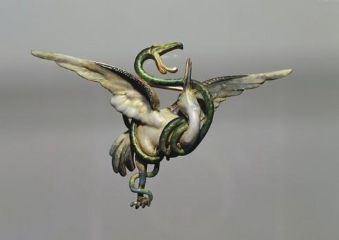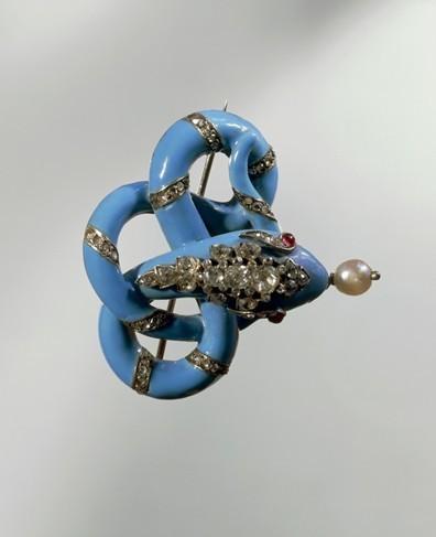 以珐琅,钻石及黄金打造的蛇形胸针,约1840年,19世纪。
