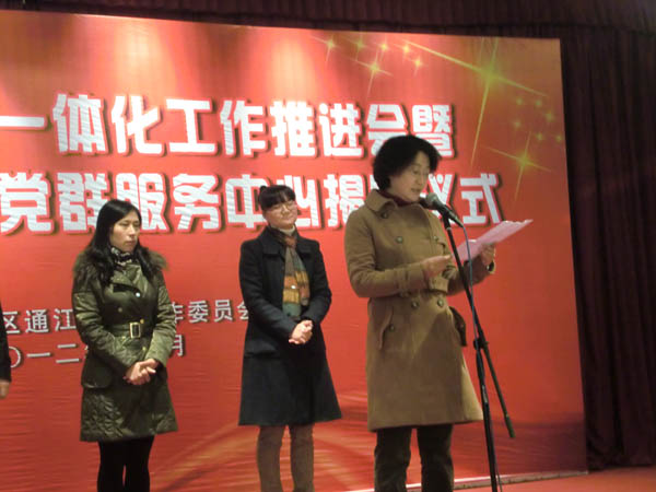 2012年12月4日,崇安区通江街道党群一体化推进会暨北仓门创业人才党群服务中心揭牌仪式在北仓门生活艺术中心隆重开幕。崇安区委组织部副部长袁晓宁,区团委书记施阳,通江街道党工委副书记任洁等出席会议。