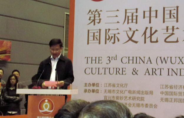 11月1日上午,由江苏省文化厅,无锡市人民政府等相关单位主办,无锡市文广新局等单位承办的“第三届中国(无锡)文化艺术产业博览交易会”开幕式在太湖国际博览会隆重举办, 江苏省文化厅厅长徐耀新,无锡市委副书记、代市长汪泉,市委常委、宣传部部长王国中,副市长华博雅,市文广新局局长叶建兴,市文广新局文化产业处处长蒋星等省市领导出席。徐耀新,王国中等领导发表重要讲话,开幕式由华博雅主持。