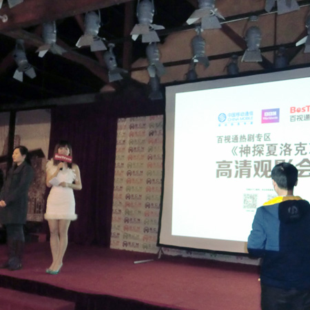 1月12日,由中国移动通信,BBC、百视通联合主办的“《神探夏洛克》高清观影会”在北仓门生活艺术中心举办,通过现场观影、互动的方式,让我们感受大屏幕,高清晰的电影魅力。