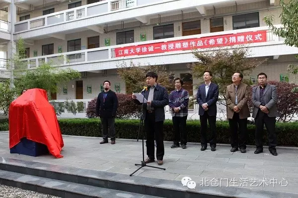 活动中,徐诚一教授畅谈创作和捐赠感悟。盐城市教育工委副书记邹必俊向徐诚一教授颁发了捐赠证书。盐城市委教育工委书记、市教育局党委书记、局长殷勇和徐诚一教授为雕塑《希望》揭幕。