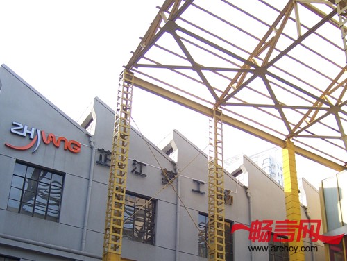 在同乐坊老工厂的改建中,还保留了人字型和众字型屋顶。所谓的“人字形”屋顶,其实是建筑上的三角形桁架。由于三角形桁架受力均衡,结构简单,适合大跨度建筑,所以被广泛用于厂房建筑中。 “众字形”屋顶的形成,是因为在屋顶上加开了侧天窗的原因,侧天窗可以有效地采光又防止雨水渗漏,在发生火灾的情况下还有排烟作用,所以也被广泛用于厂房建筑中,制作上是在“人字形”三角形桁架上再加一个小的三角形。
