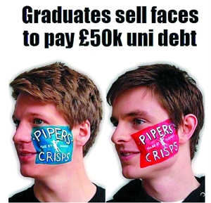 22岁的剑桥大学学生埃德·莫埃斯和罗斯·哈珀需要支付5万英镑(约合人民币50万元)的学生贷款,他们不像其他同学一样打工赚钱,而是想出了用自己的脸打广告的创意。开始时,他们1个广告1天的要价仅为1英镑(约合人民币10元),而现在他们变得非常抢手,1天广告的价格已达到400英镑(约合人民币 4000元),而且价格还在上涨。
