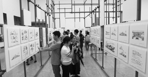 在美术馆的3个展厅中,共展出了30余个建筑项目,其中两个展厅是程泰宁个人作品,另一个展厅则陈列筑境(程泰宁设计公司名)团队作品和程泰宁手稿,而后者引来不少观众和业内人士的赞叹。