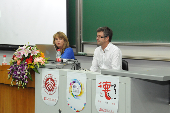 2012年9月21日,北京大学2012年第十场对话全球创新大师--德稻大师讲坛史赢来了两位讲座嘉宾--郝天娜(Tina Hart)和贾金杰(Kim Jarrett)。郝天娜和贾金杰是杰出的情境景观设计伙伴,二人合作打造了Dawnfinder设计团队,共同设计了上海世博会新西兰馆屋顶花园并主持制作一系列国际电影大片的布景设计,例如电影《金刚》。