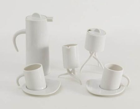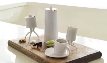 这套茶具像卡通动画里的拟人茶具一样,在设计师的精心打造下,这些茶壶茶杯们也不安分起来,偷偷地伸出胳膊和腿,歪歪斜斜地倚在桌上,它们也仿佛具有了生命力,想在舞台上秀出精彩。