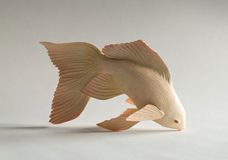 日本雕塑家木雕作品:美人鱼清丽优雅