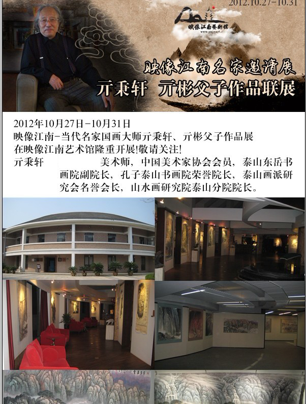 2012年10月27日,“2012’映像江南-当代国画名家系列邀请展——亓秉轩、亓彬父子国画作品联展”在杭州映像江南艺术馆举行。本次展览由中国现代美术研究学会、中国美术研究协会、杭州映像江南艺术馆主办;由杭州艺术家俱乐部、映像江南艺术品收藏家俱乐部、杭州微商资本、杭州辰午雕塑有限公司承办;是“映像江南---2012年浙江省中青年艺术家作品联展”的延伸系列展览,展览将展出中国当代艺术名家,一级美术师亓秉轩、亓彬父子创作的中国画部分精品60余件。此次展览受到杭州映像江南艺术馆、杭州市艺术家俱乐部的邀请,展览期间画家也与杭州当地的一些知名艺术家进行了学术上的交流活动,本次展览同时也是作为映像江南艺术馆与杭州艺术家俱乐部精心策划的“2012----当代中青年发展潜力艺术家”造星推广计划活动之一。