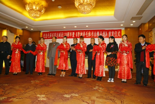 出席仪式的嘉宾有:中国毛体书法家协会会长景学勤中将、中国人民解放军原总后勤部政委周坤仁上将,中国人民武装警察部队原总司令吴双战上将,中国人民解放军总参谋部赵秉森政委,总政治部张鹏飞少将,总政治部郝建昌少将,中国人民解放军总装备部王盛涛少将,总装备部兵种装备部陈保定少将,中国人民解放军测绘学院戴学速政委;中纪委纠风办主任王嘉岩,中华爱国工程联合会主席李和平,中央政法委综合三室刘方保主任,国土资源部执法监察局李建勤局长中石油唐庭川局长,中国毛体书示家协会名誉会长、毛泽东侄女毛小青,中毛协顾问、毛泽东主席身边工作人员周福明,中毛协顾问、中央档案馆毛泽东手书专家齐得平,中毛协法律顾问侯安春,中毛协顾问副会长兼秘书长孔维阳,北京军区政治部战友文工团特型演员杜天清,人民检查院李文峰处长,中国共青团中央事业发展部主任孙敏,中国书法家协会办公室主任李国明,中国美院副院长黄维耿,中国人民解放军空军政治部创作室主任贺国林,中央机关美术家协会主席王阔海,中国国际航空总经理黄敏,中央电视台农影中心导演制片人周祚,书画策展人李涛,青年花鸟画家翟俊峰,意门国际美术馆馆长黄中、新华社通讯社主管苏娟,人民网政务舆情部主任杨华军,中国航天书画院院长赵国强,搜狐网文化频道编辑高敬等文化艺术界,商界,媒体界二百多人出席了仪式。