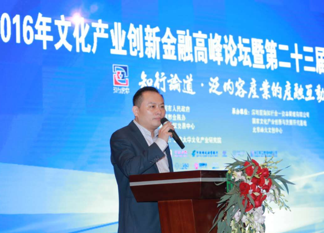 由深圳市政府、深圳市金融办所主办,深圳前海知行合一资本、文化产业创新与发展研究基地所所承办的“2016年文化产业创新金融高峰论坛——知行论道·泛内容产业的产融结合”于2016年10月14日在大中华希尔顿大酒店隆重举行,来自北京大学、酷狗音乐、佳兆业文化集团、新沃资本、禾中金控、九牧王、以及其他50多家投资机构的专家、学者、资本大佬参与了此次高峰论坛。
