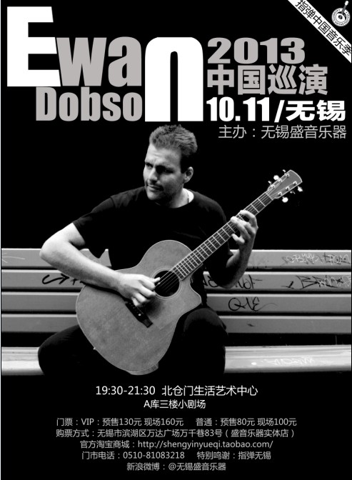 10月11日晚,被称为“斗笠哥”的指弹吉他大师EwanDobson2013中国巡演(无锡站)将在崇安区北仓门生活艺术中心A库三楼小剧场举行。