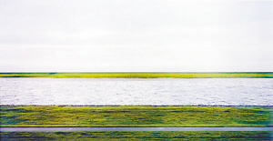 从严格意义上讲,这张“世上贵”照片能否算是一张“真正的照片”还有待商榷,也许将其称之为“以摄影方式作为基本创作元素的艺术作品”更恰当。这张照片描绘了一条完全没有轮廓的小路、草地、河流和灰色的天空,河对岸原有的一座工厂被摄影师用数字技术处理掉了,保留下来的景物形成一条条不受任何阻碍的平行色块。没有任何起伏的彩色线条,宛若由颜料画出来的。