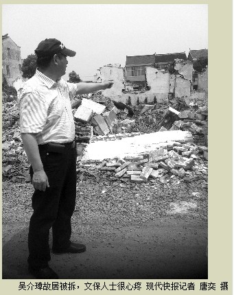 “故居大约一周前被拆的。”贾扬回忆说,吴介璋故居在阳山镇新西自然村并不出名,但村里部分老人知道这栋老房子的主人颇有来头。