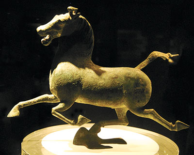 甘肃武威雷台墓青铜马,俗称“马踏飞燕”。