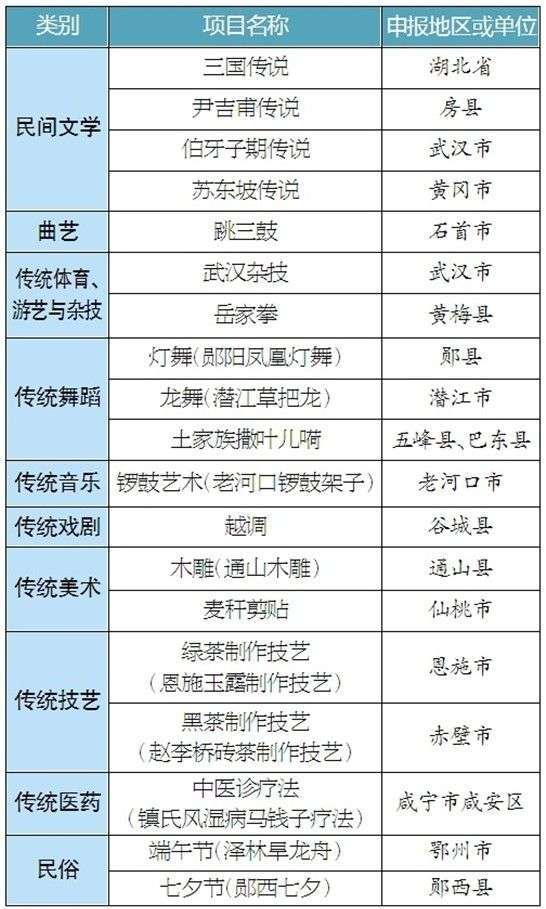 湖北省入选第四批非物质文化遗产代表性项目公示名单