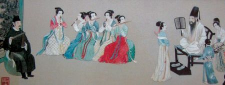 对于它的记载早见于汉代刘向《说苑》所述:“晋平公使叔向聘吴,吴人饰舟以送之,左百人、右百人,有绣衣而豹裘者,有锦衣而狐裘者。”这段话的意思是:晋平公派遣使节叔向来吴国访问,叔向由吴国返回山西时,吴国人用装饰富丽的花舫为他送行,在船的两舷,各有100名送行者,有的穿着刺绣服装,有的穿着锦缎和毛皮的服装。