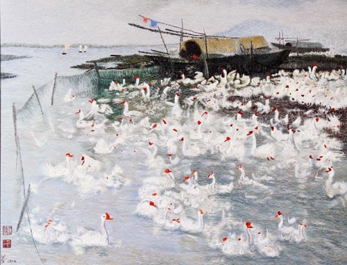周海云作品《太湖群鹅》