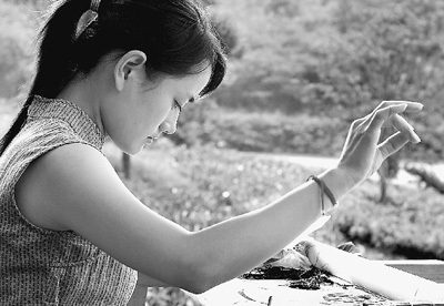 70后绣娘邹英姿,性格明快如一只早春的燕子。她首创的“滴滴针法”获得刺绣针法发明专利。她以小小锈针,阐释着历史的沉思、生命的感悟。“我是摸着针线长大的。”邹英姿不但爱绣,而且爱画,家里的白墙上都被她画满了杨柳、燕子。初中毕业,邹英姿到苏州求学。“一幅《蒙娜丽莎》整整绣了一年,作品中每个细部,包括光线变化、衣服的每个皱褶,我自信比别人把握得准!”邹英姿常在全国各地看展览、听讲座。摄影展、绘画展、陶瓷展、木雕展……“艺术是相通的,我要多找找刺绣语言的感觉。”