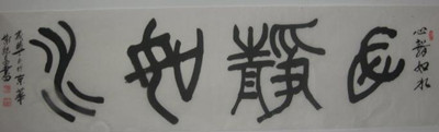 谢纪昌:我从小酷爱书法和篆刻,我觉得艺术主要是突出个性。我的篆刻作品曾经在军事博物馆多次进行展出,也曾为领导人刻过章。曾被奥委会慈善总会收藏。我的篆刻作品主要师秦法汉,在传统艺术的基础上传承和发展。我的书法个性主要在把篆书和隶书结合起来形成自己的风格。说到书法创作,其实是一件非常复杂的综合性活动。在创作中,既要考虑到技法的因素,又要考虑到心理的因素。我们通常认为,技法固然重要,但是真正影响创作风格、特征、水平的往往是书法家在创作时的心态。