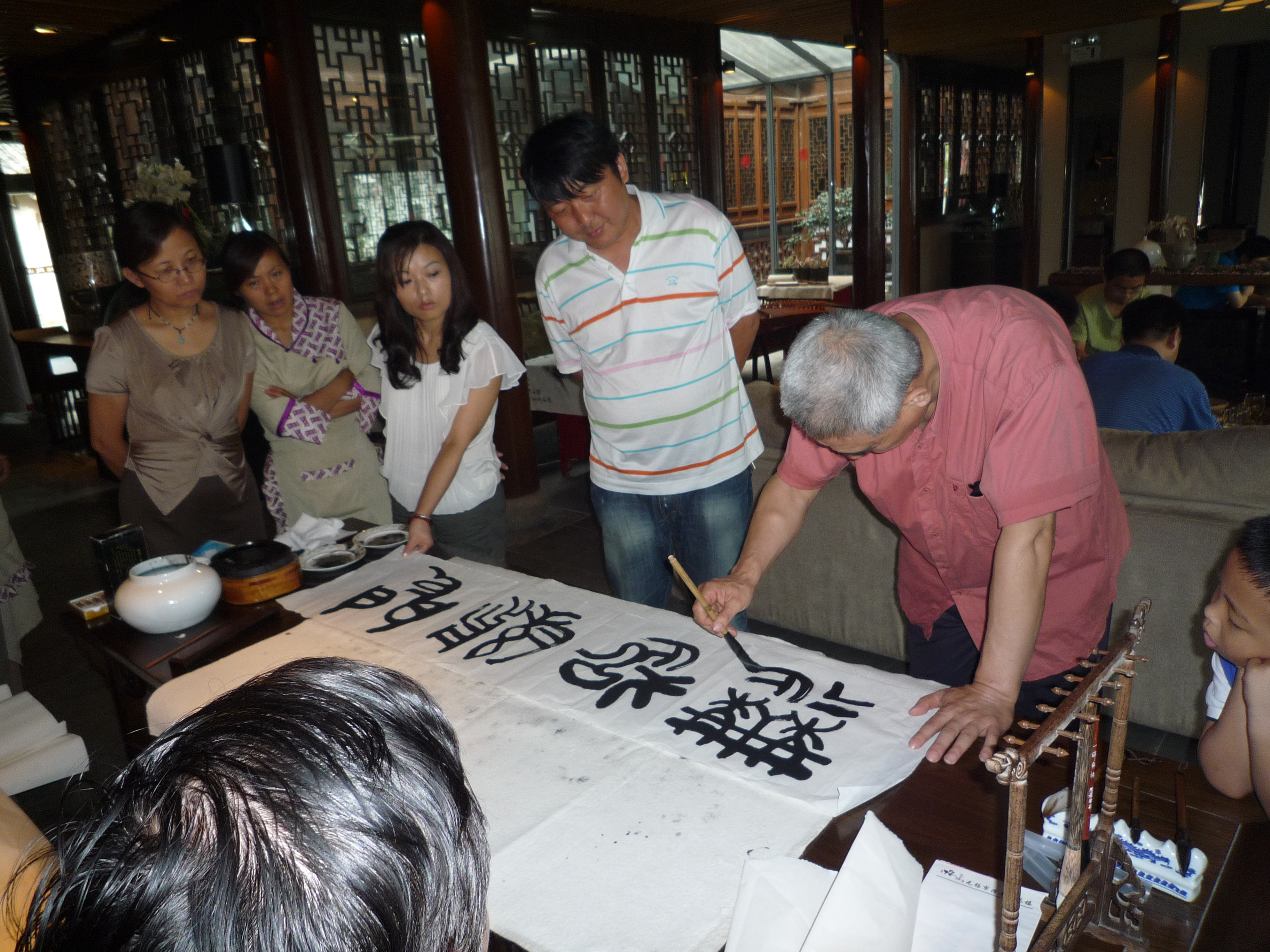 刘老师曾任锡城书协主席,篆隶书驰名书坛,且为人随和,性情率真,一如他的书法,大气豪迈。向他请教书法,总是好处说好,不足处说不足,颇得感悟。梅花书屋四字以小篆体写,小篆体多清秀妍媚,而刘老师的小篆入眼是苍茫大气,笔墨见梅花精神,置身字前,仿佛闻梅香于尺幅,见大海于咫尺,真是字如其人,人如其字啊!