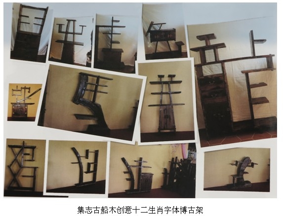 古船难掩沧桑,残木幽湛溢出。斯细观巧琢天工,神随醉意其貌不扬。斟酌,思量,余韵荡气回肠。孙吉志主推的的古船木十二生肖字体博古架面市后,深得人们追捧。除此,他还利用明清古木雕,结合古船木材料,开发出不同风格的古船木家具和装饰品100多种,极受不同层次消费者的青睐。这些艺术品不仅代表了闽南文化的特色,更保留了对闽南文化历史的传承和见证。
